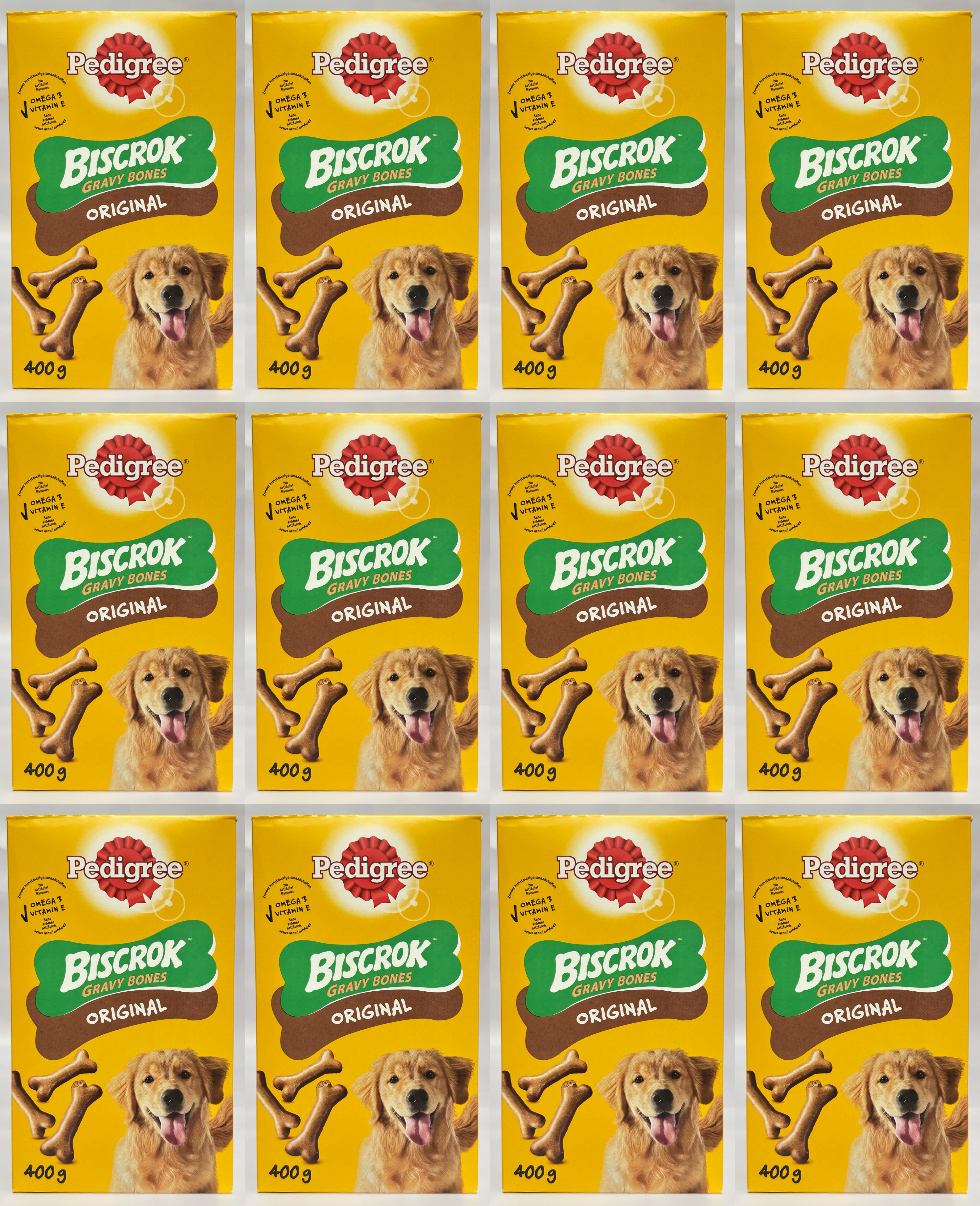Pedigree Biscrok Gravy Bones Dog Biscuits – Original Recipe – 12 x 400g Boxes | Crunchy Dog Treats with Omega 3, Calcium & Vitamin E