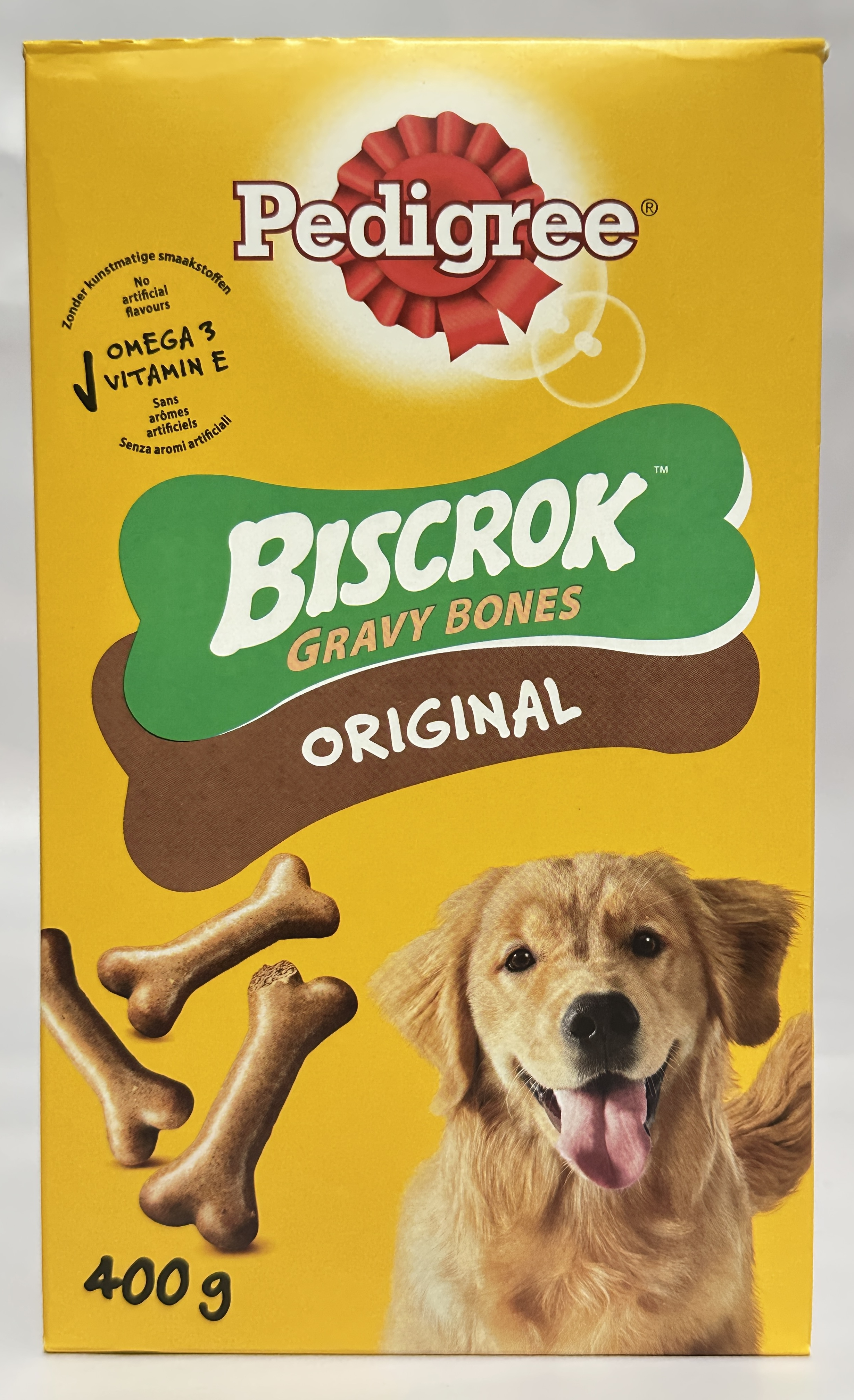 Reward your dog with the crunchy goodness of Pedigree Biscrok Gravy Bones Original – a tasty biscuit treat baked to perfection with a delicious gravy coating. Specially formulated with added vitamins and minerals, these biscuits support your dog’s health while delivering irresistible flavour.
