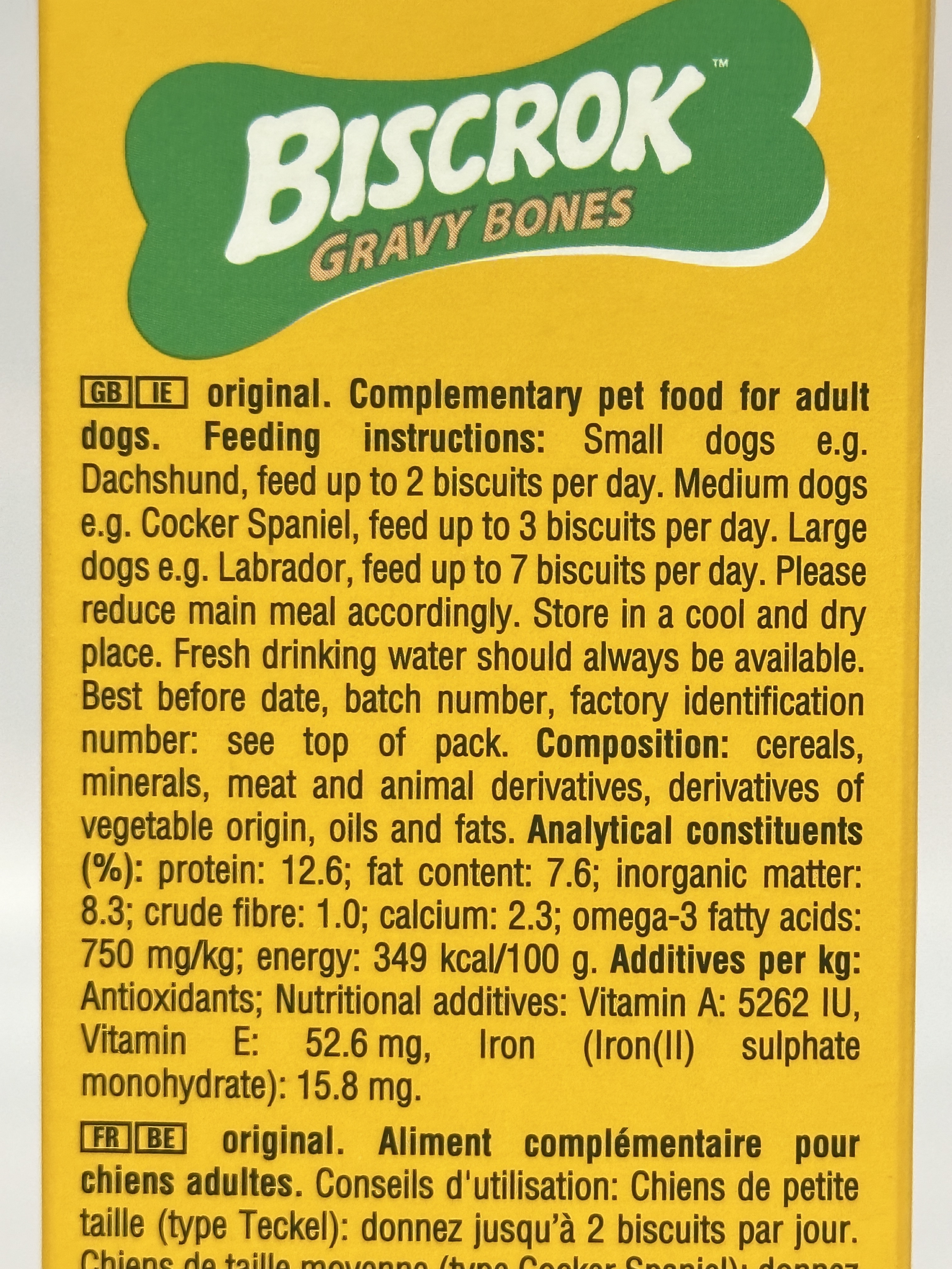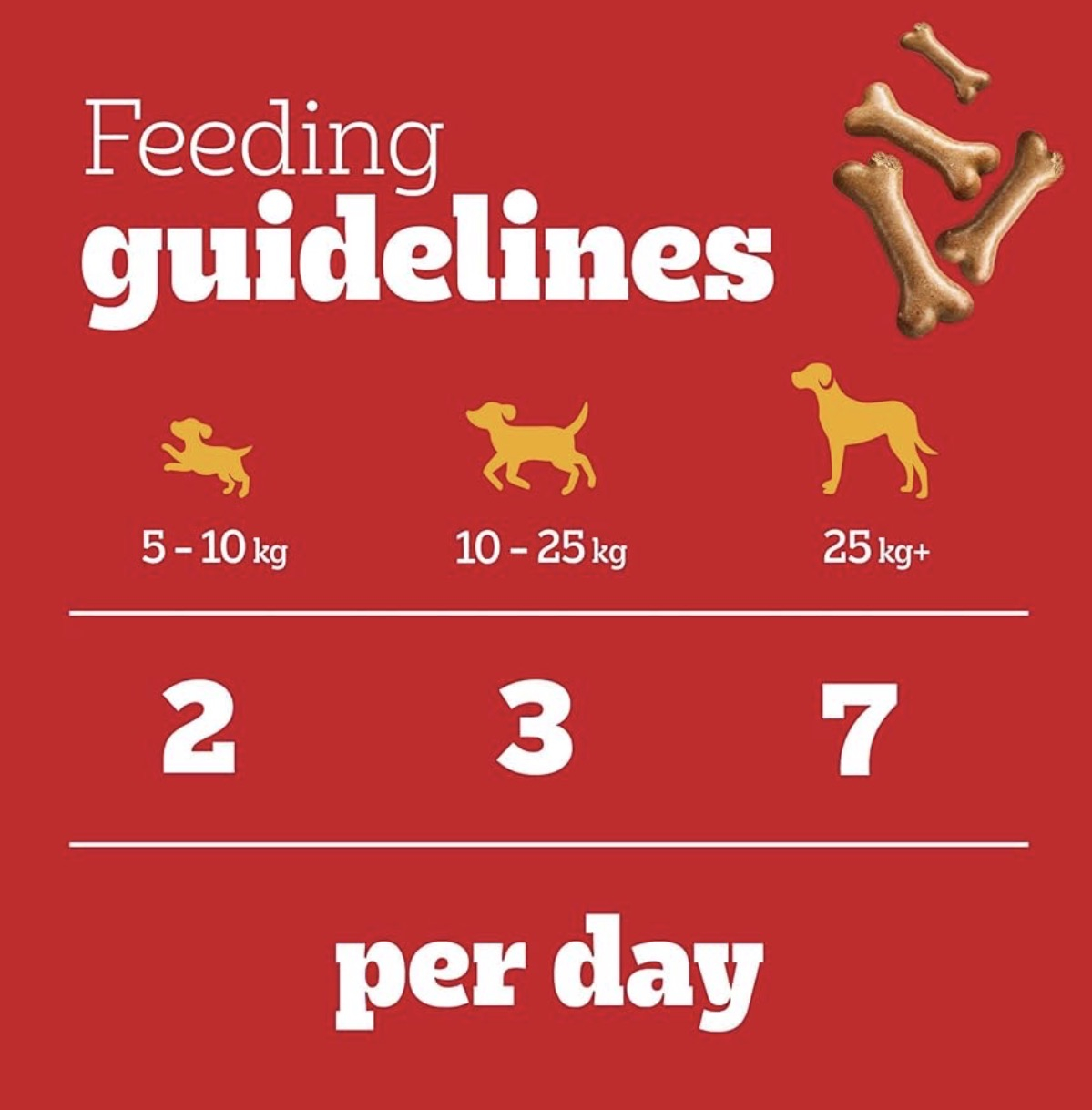 - Large dogs (e.g. Labrador): up to 7 biscuits