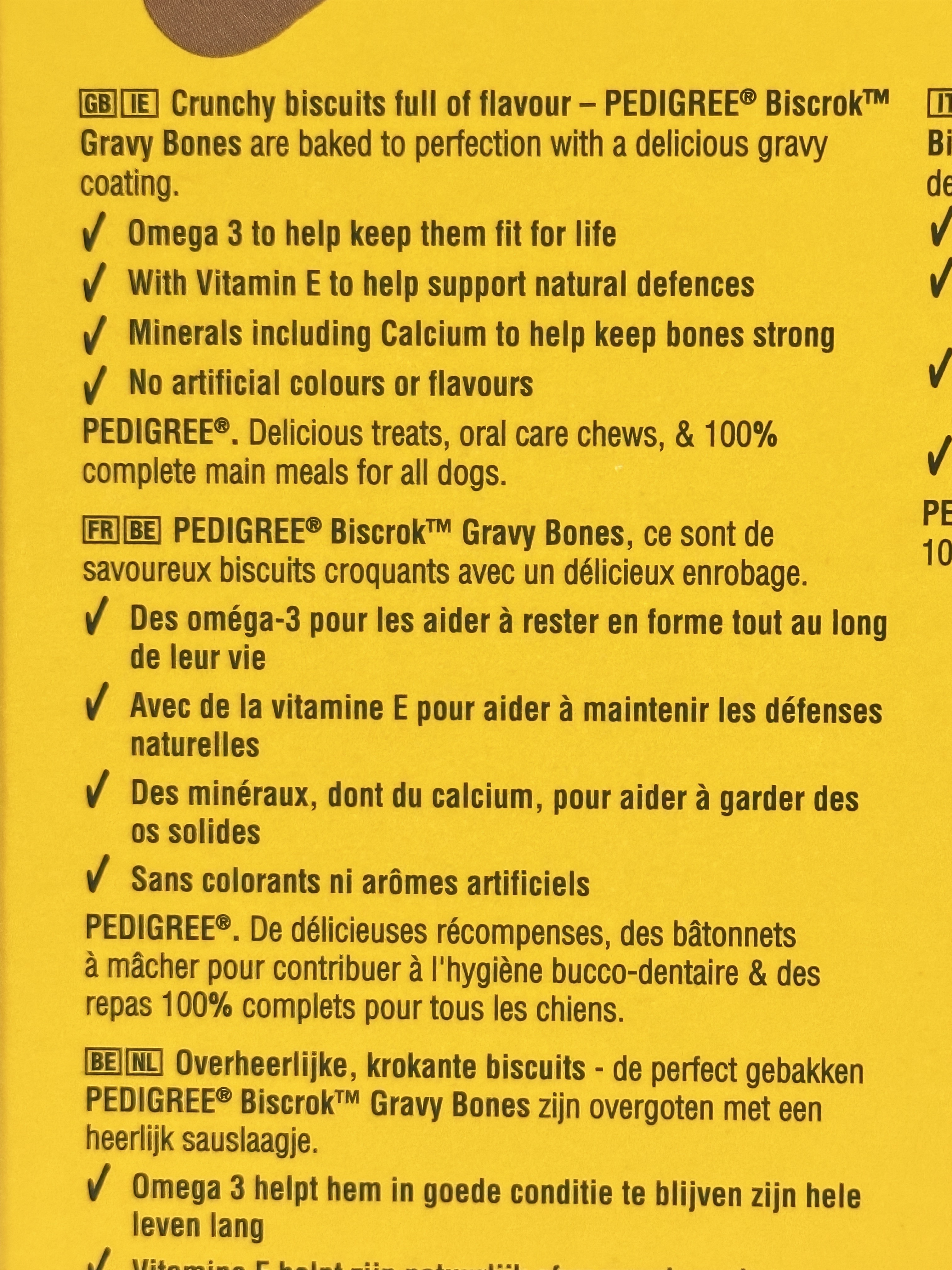 Perfect as a reward during training or as an everyday treat, Pedigree Biscrok Gravy Bones are suitable for adult dogs of all sizes.