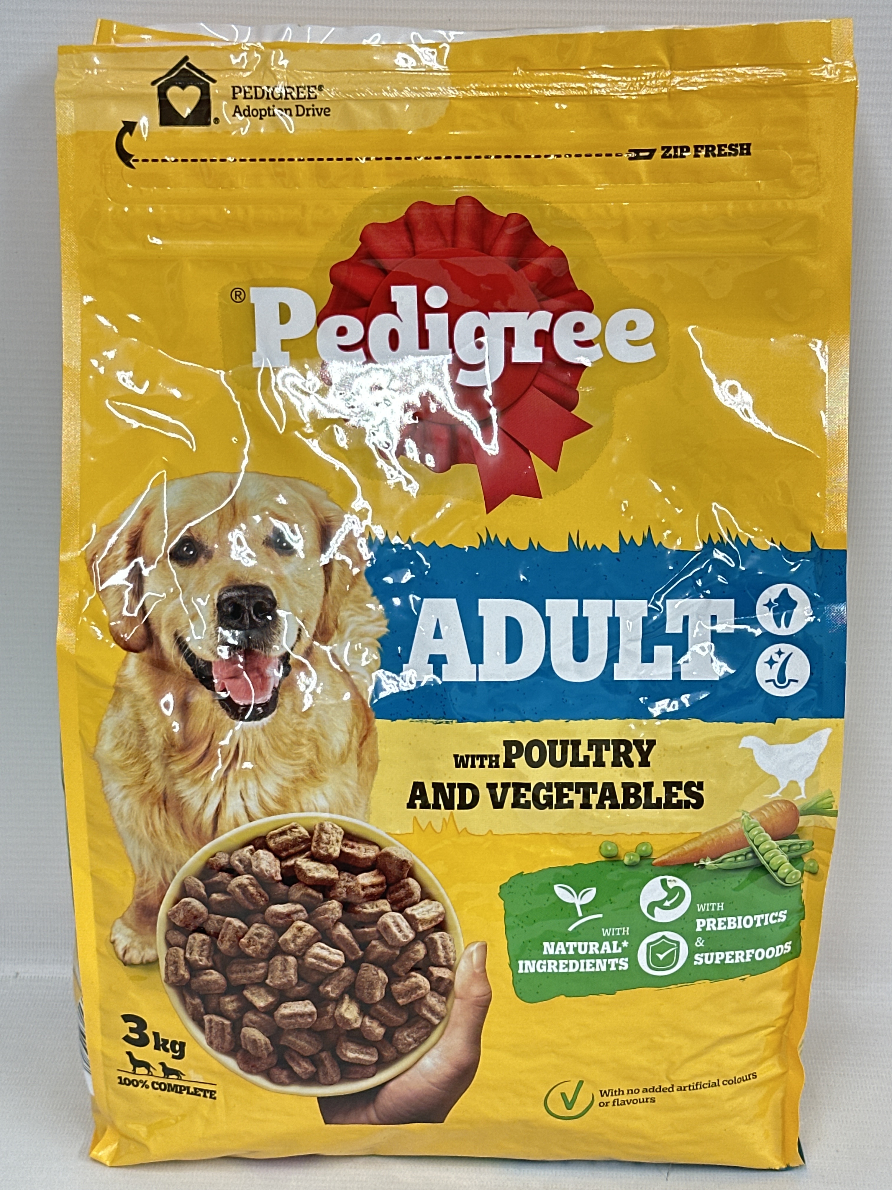 PEDIGREE Dog Complete Dry Food with Poultry & Vegetables | Adult Dogs | 3kg