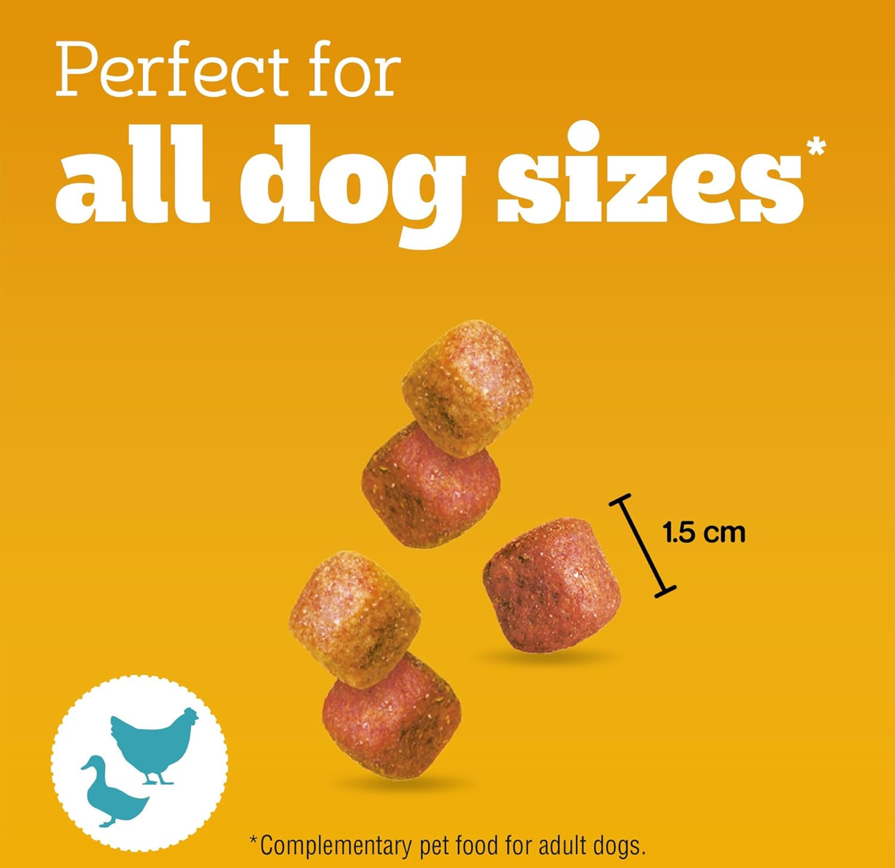 - ✅ Flavour: Chicken and Duck – tasty cubes for all dog breeds