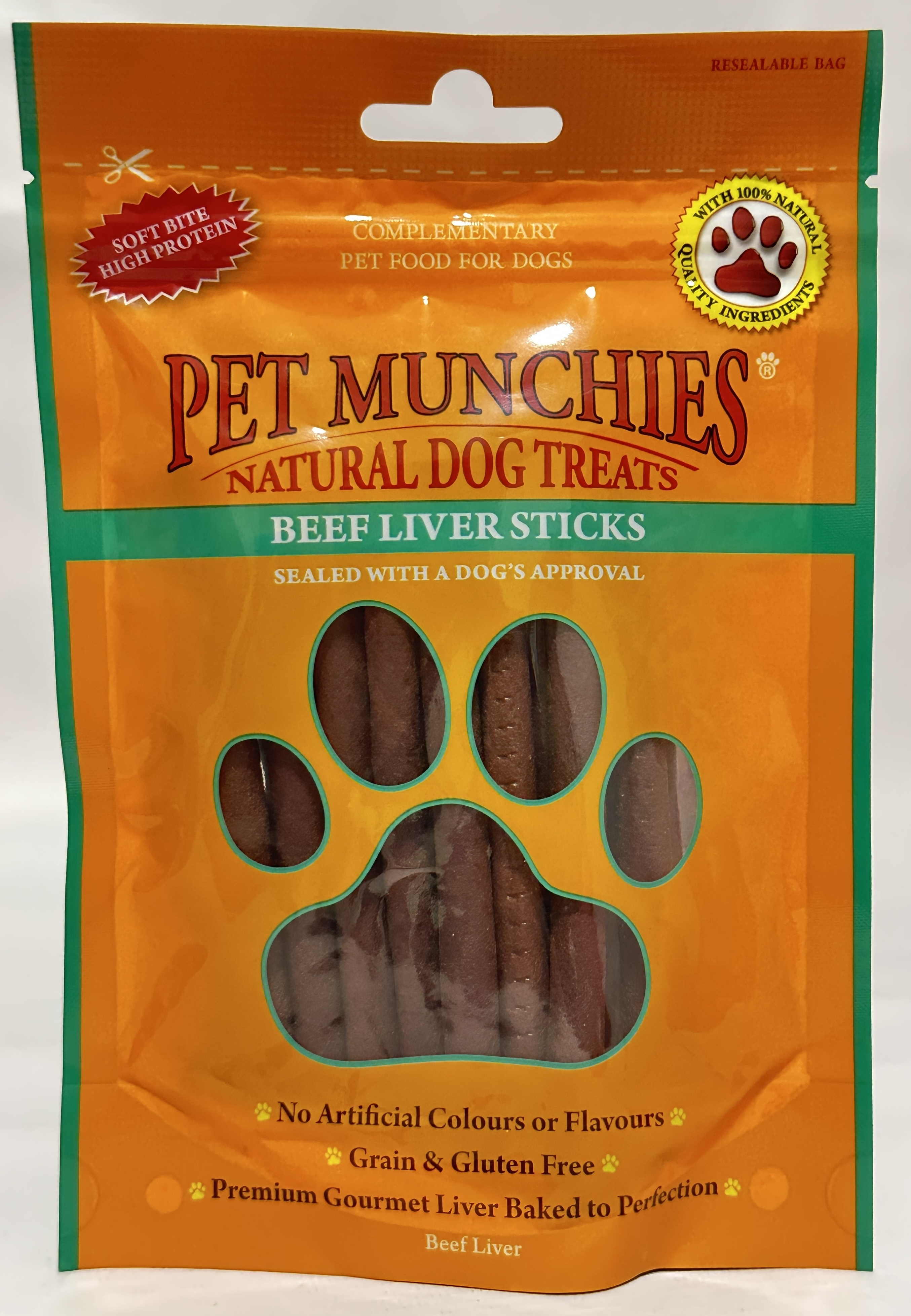 Pet Munchies Beef Liver Sticks are premium natural dog treats made with real beef liver and gently baked to lock in flavour and nutrients. These soft bite sticks are high in protein, naturally low in fat, and completely free from artificial colours or flavours, making them an ideal reward for dogs of all breeds and sizes. Grain and gluten free, they are suitable for puppies from 4 months old and can be fed whole as a chew or easily broken into smaller pieces for training and rewards.