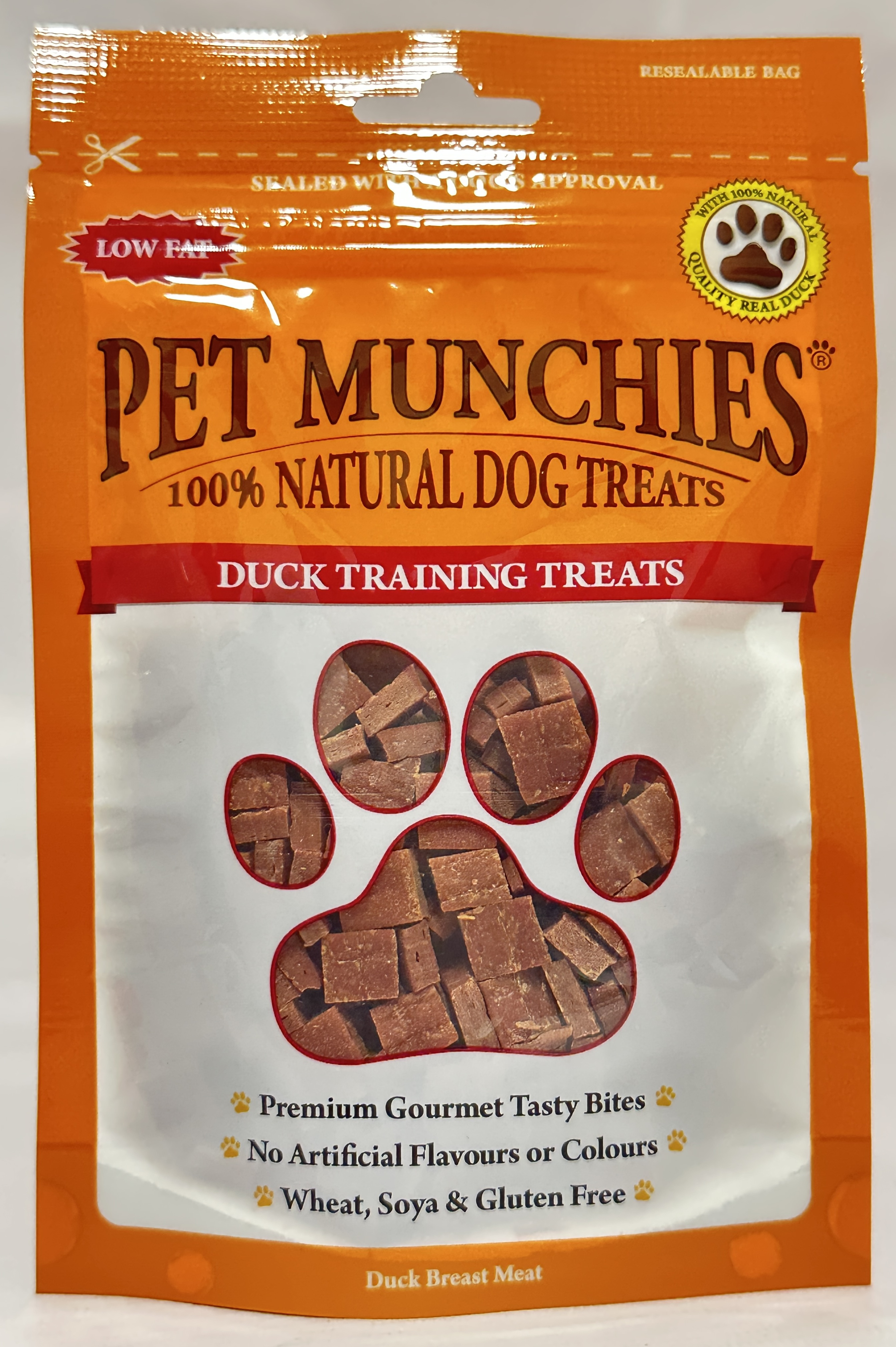 Pet Munchies Duck Training Treats are premium, grain-free dog treats made with natural duck breast meat. These bite-sized training rewards are designed to be low in fat and easy to feed during training sessions, walks, and recall practice. Made without artificial colours or flavours, they offer a simple and tasty reward option for dogs of all breeds and sizes.