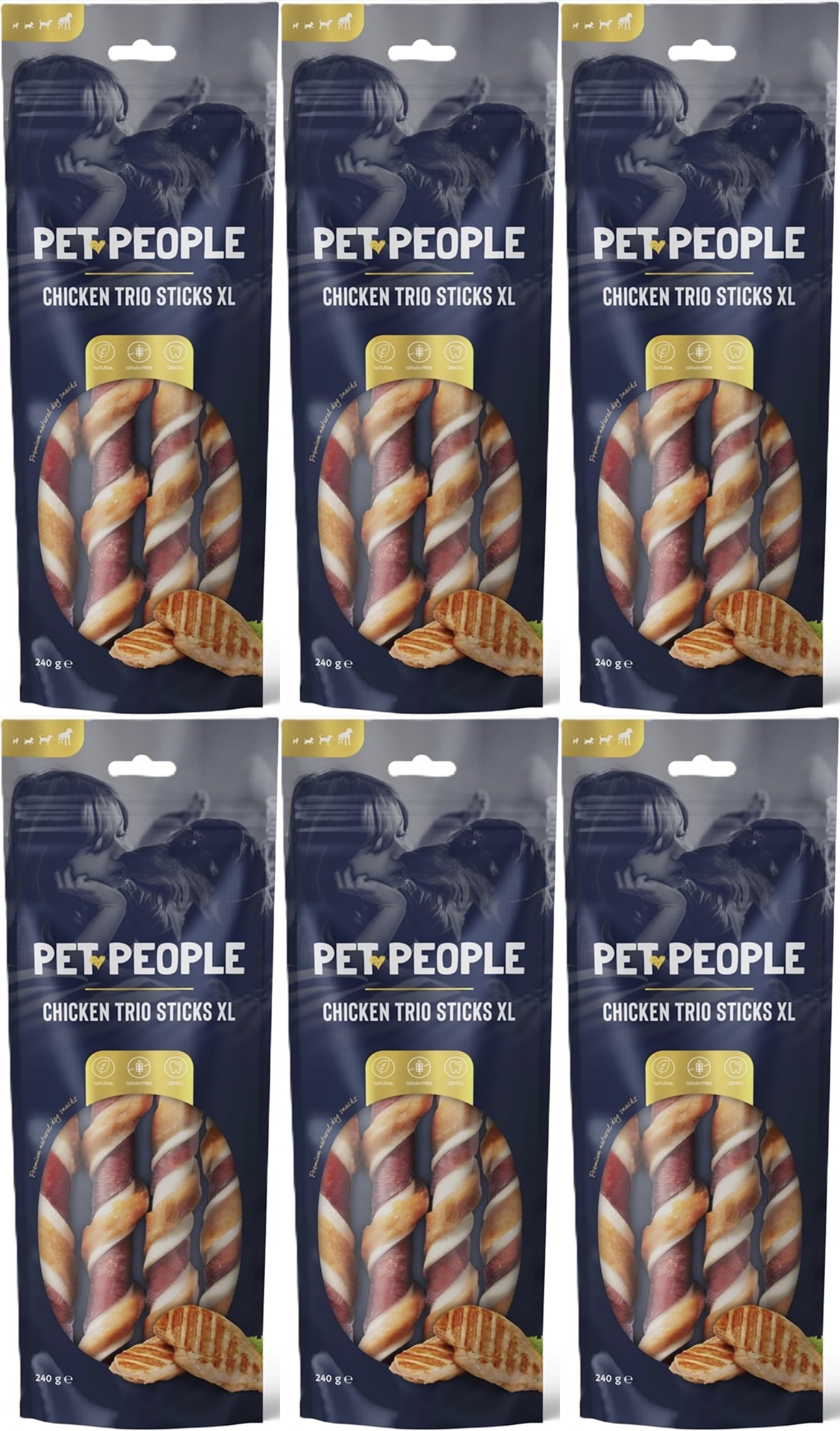 Pet People Chicken Trio Sticks XL Dog Treats | Natural Grain Free Chews | 6 x 240g Packs