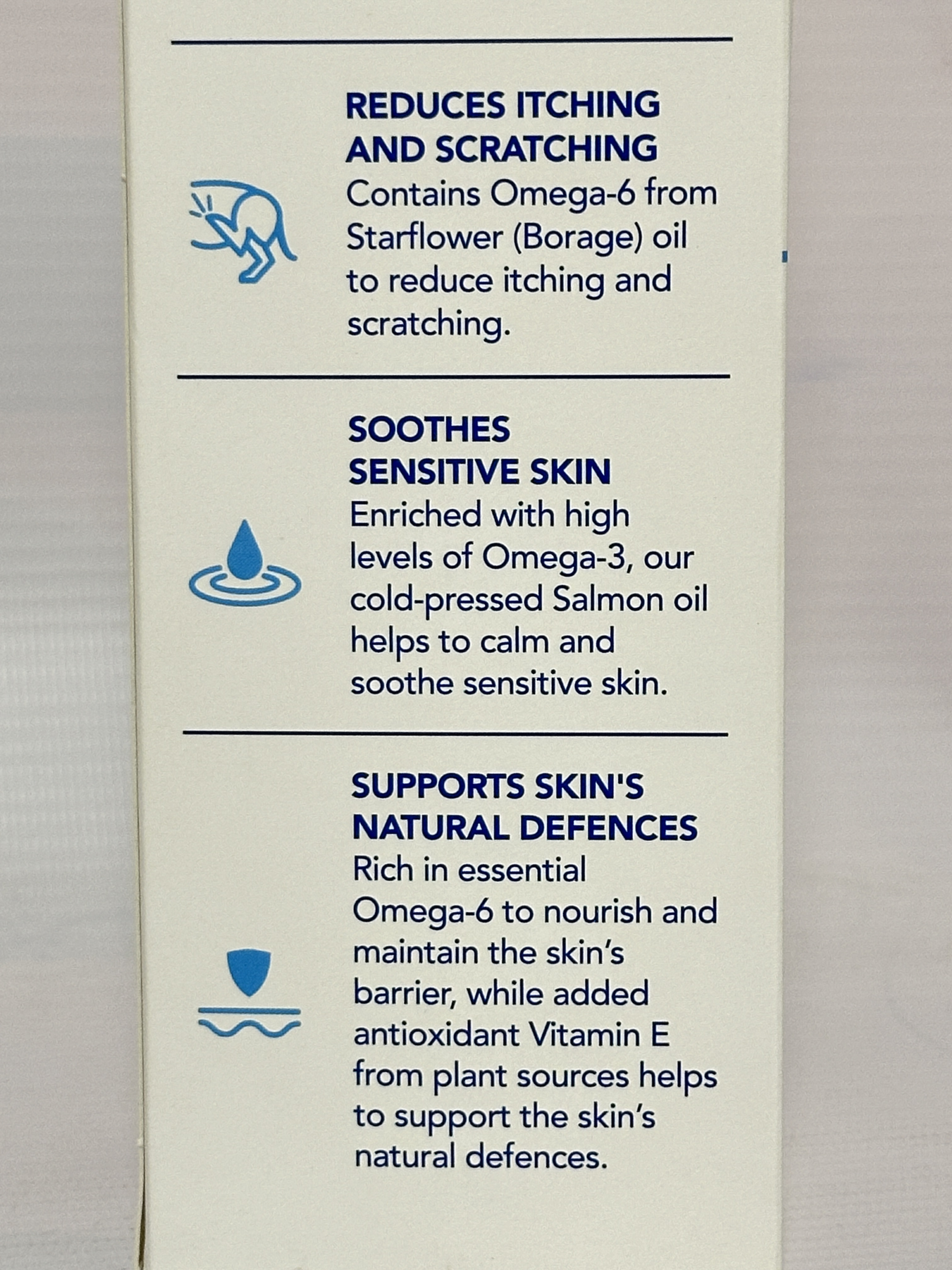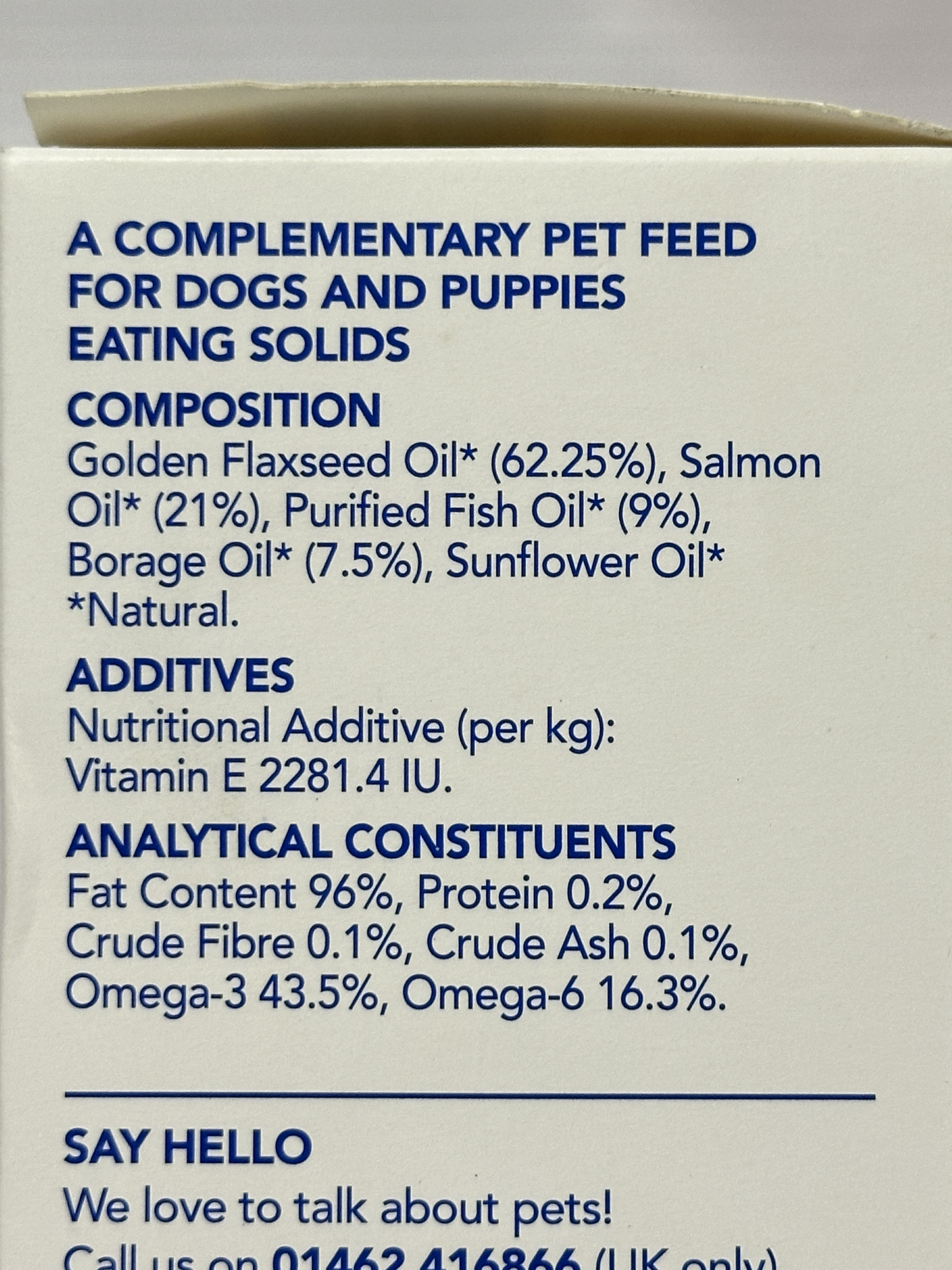 - Premium blend of natural cold-pressed oils (flaxseed, salmon, fish, borage, sunflower)