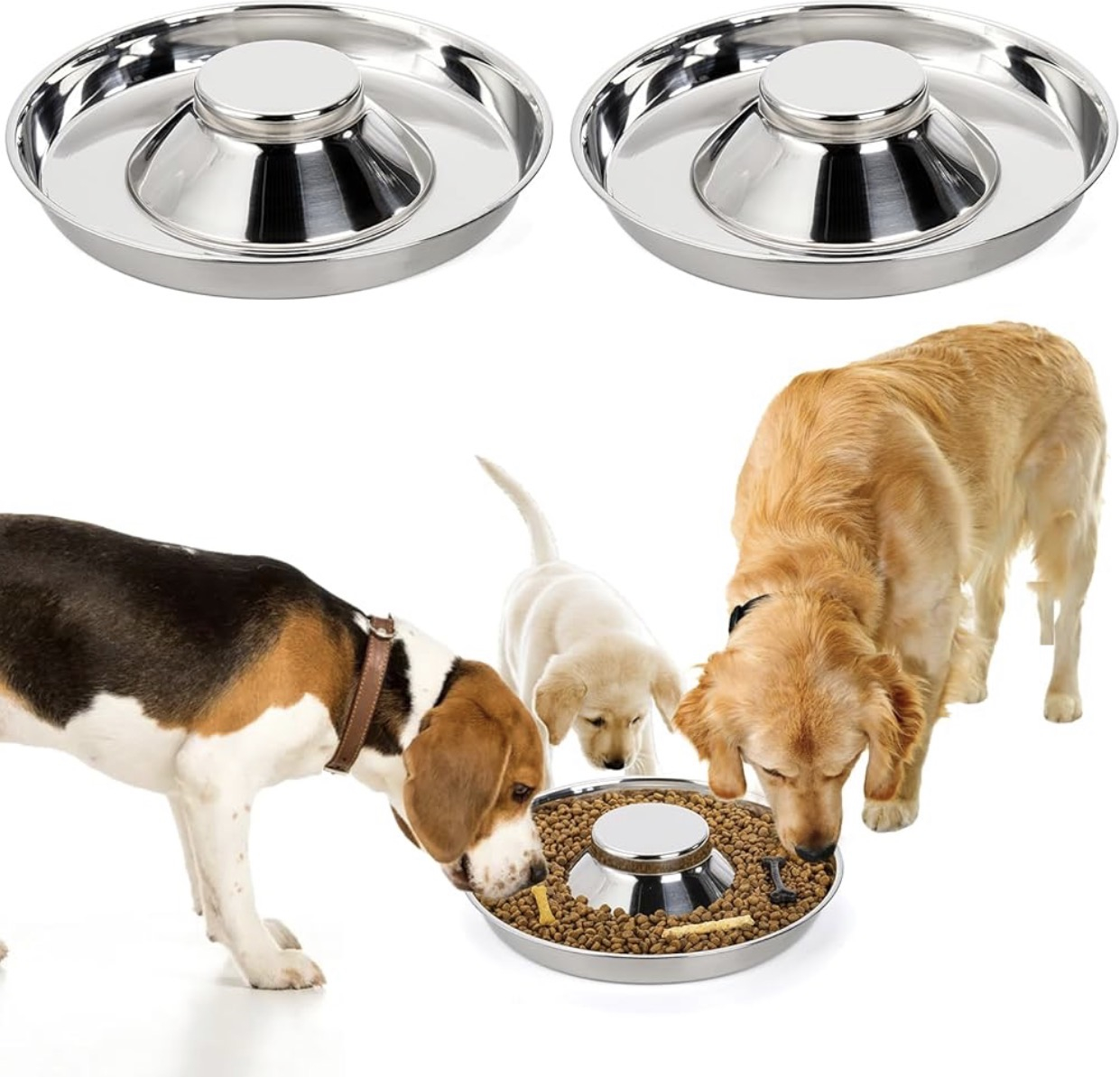 • 2 × Stainless Steel Slow Feeder Pet Bowls