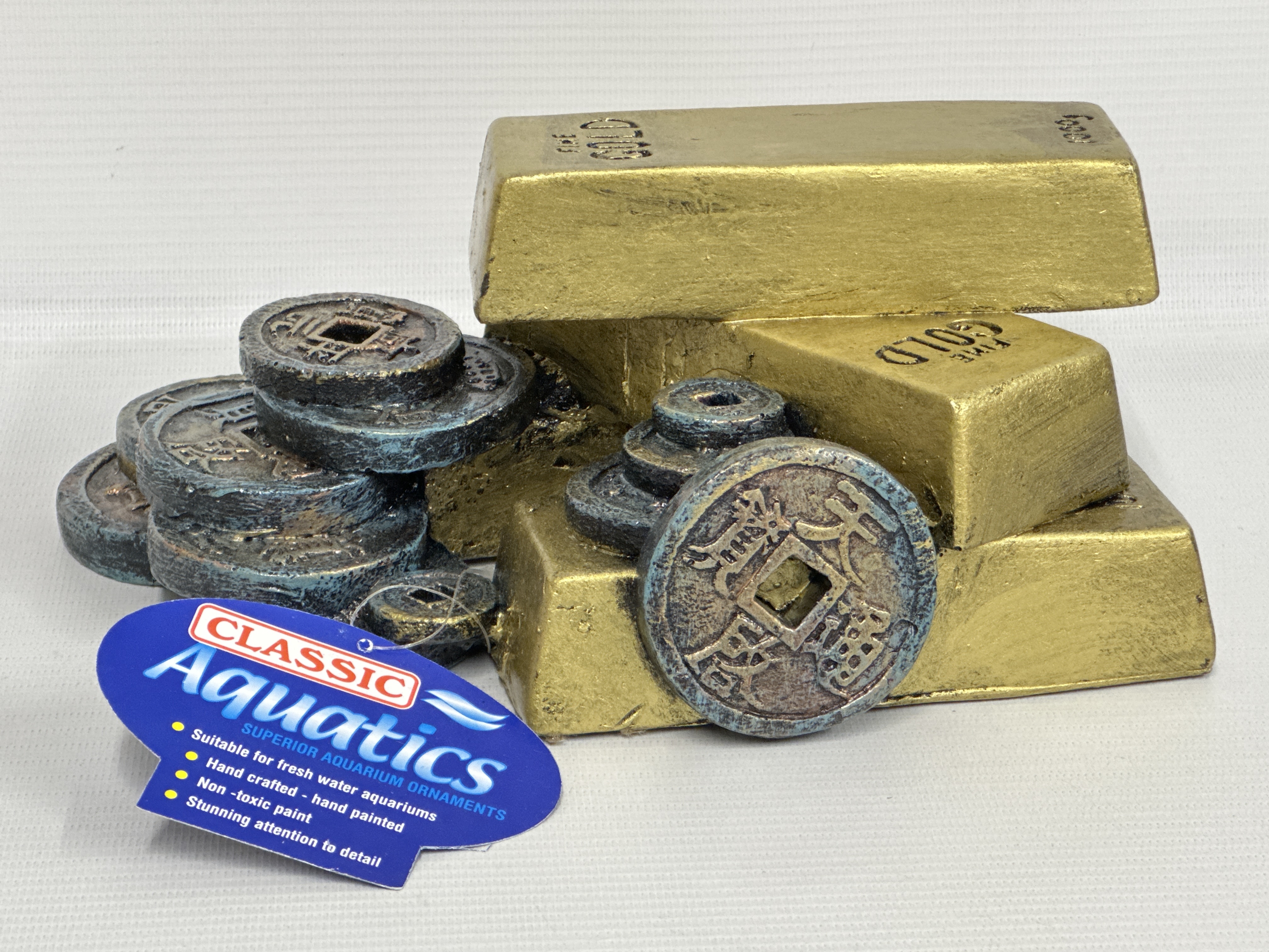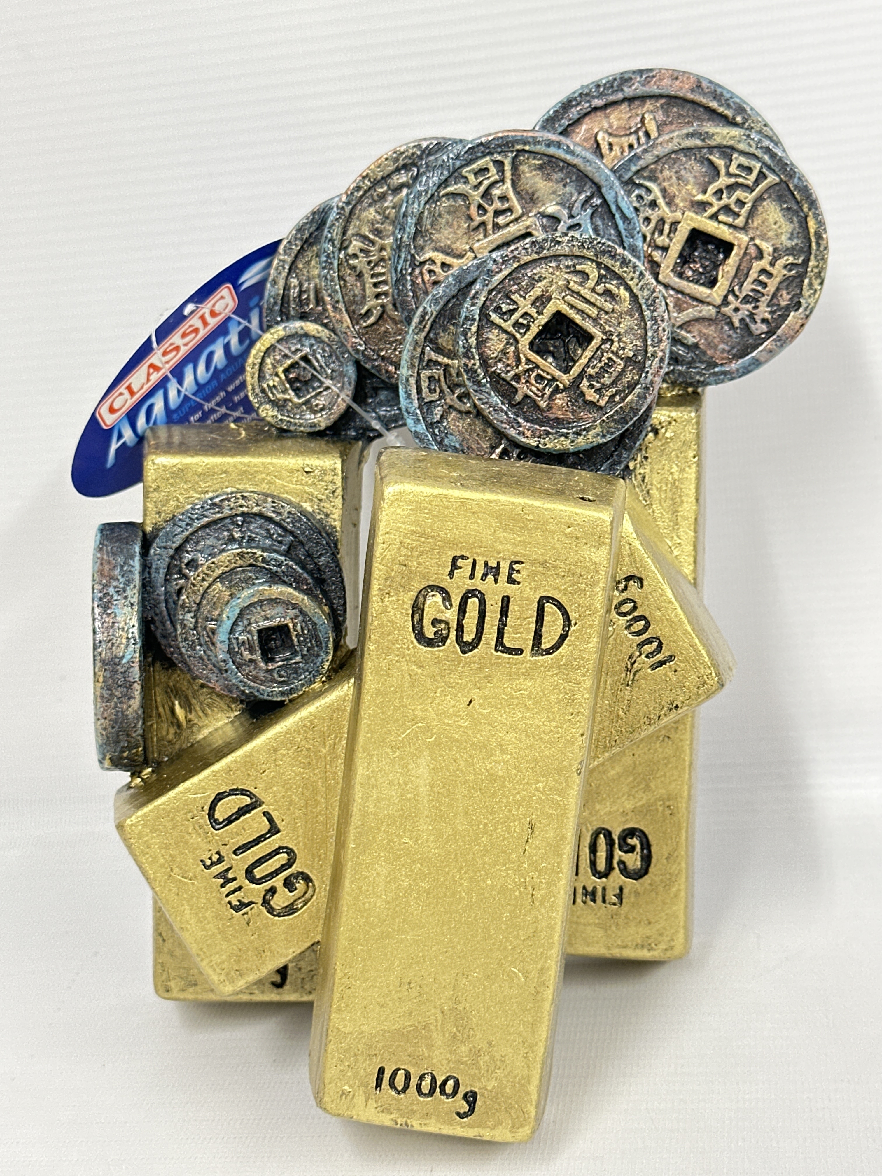 • CLASSIC Large Aquarium Ornament – Gold Bars & Coins – 240mm
