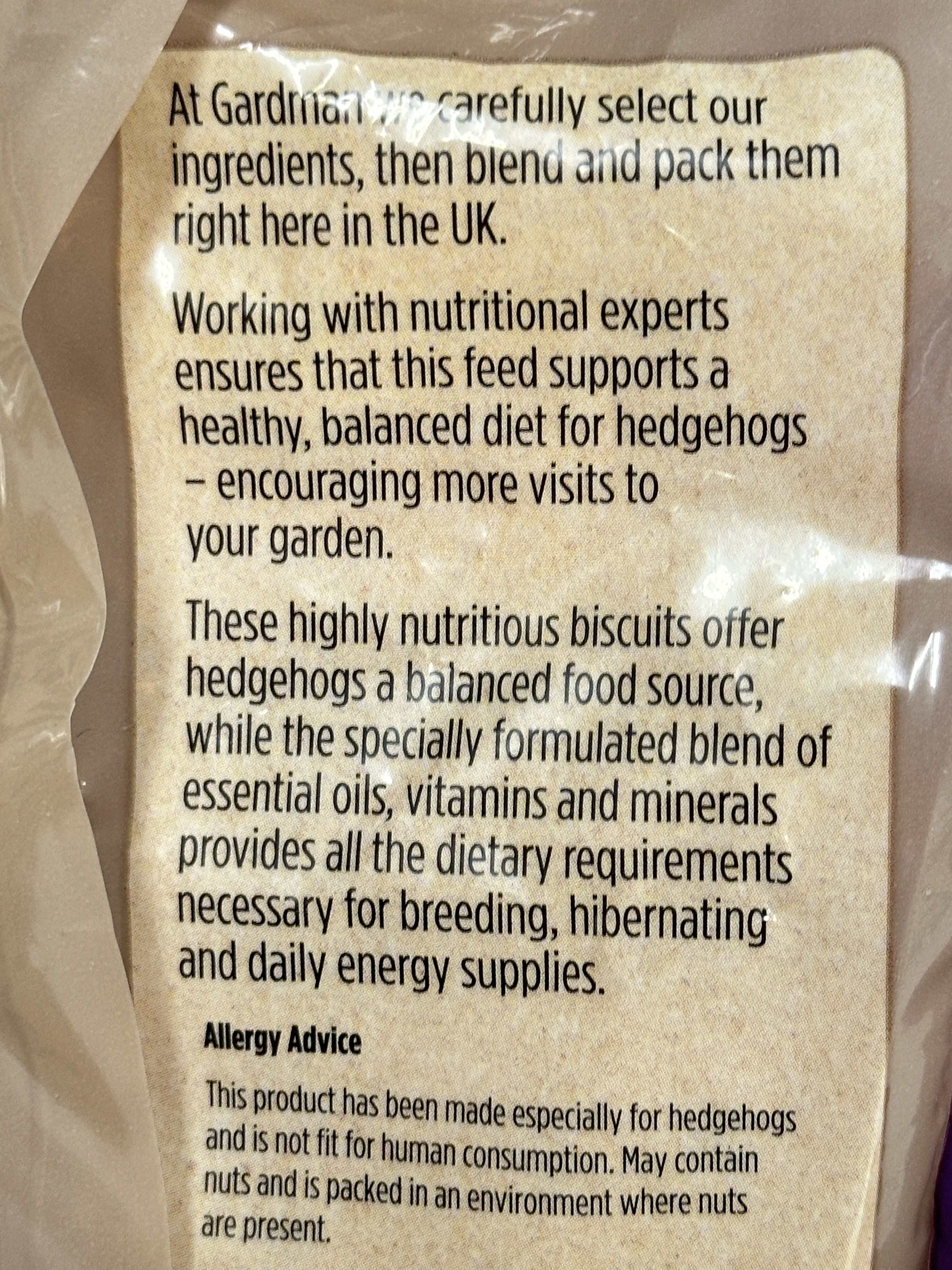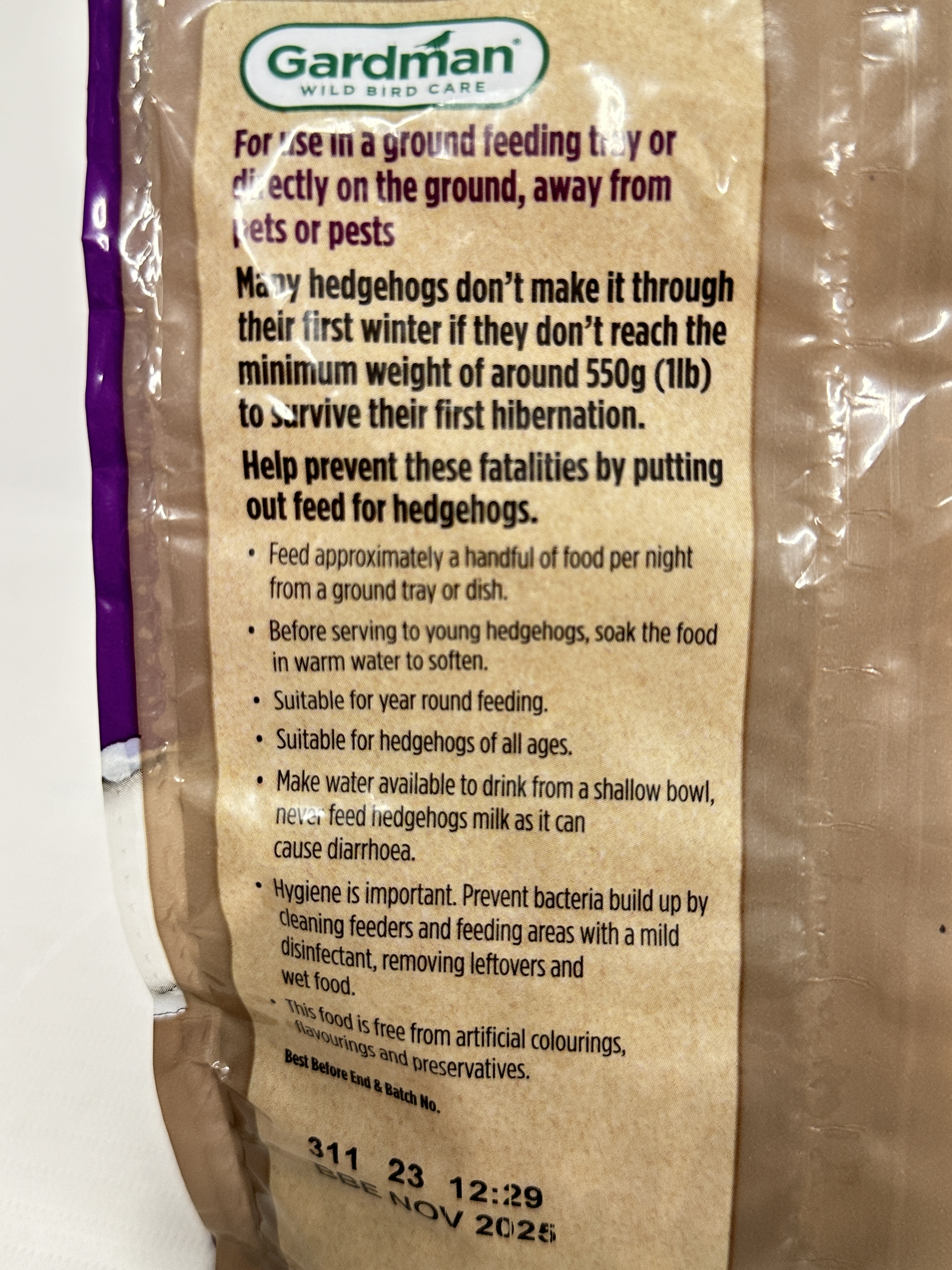 Gardman Hedgehog Food Bites 650g Bag High Energy Rich Nutritious Hedgehog Dry Food. Pet Food Suitable for Hedgehog Feeding Station or Ground Feeder