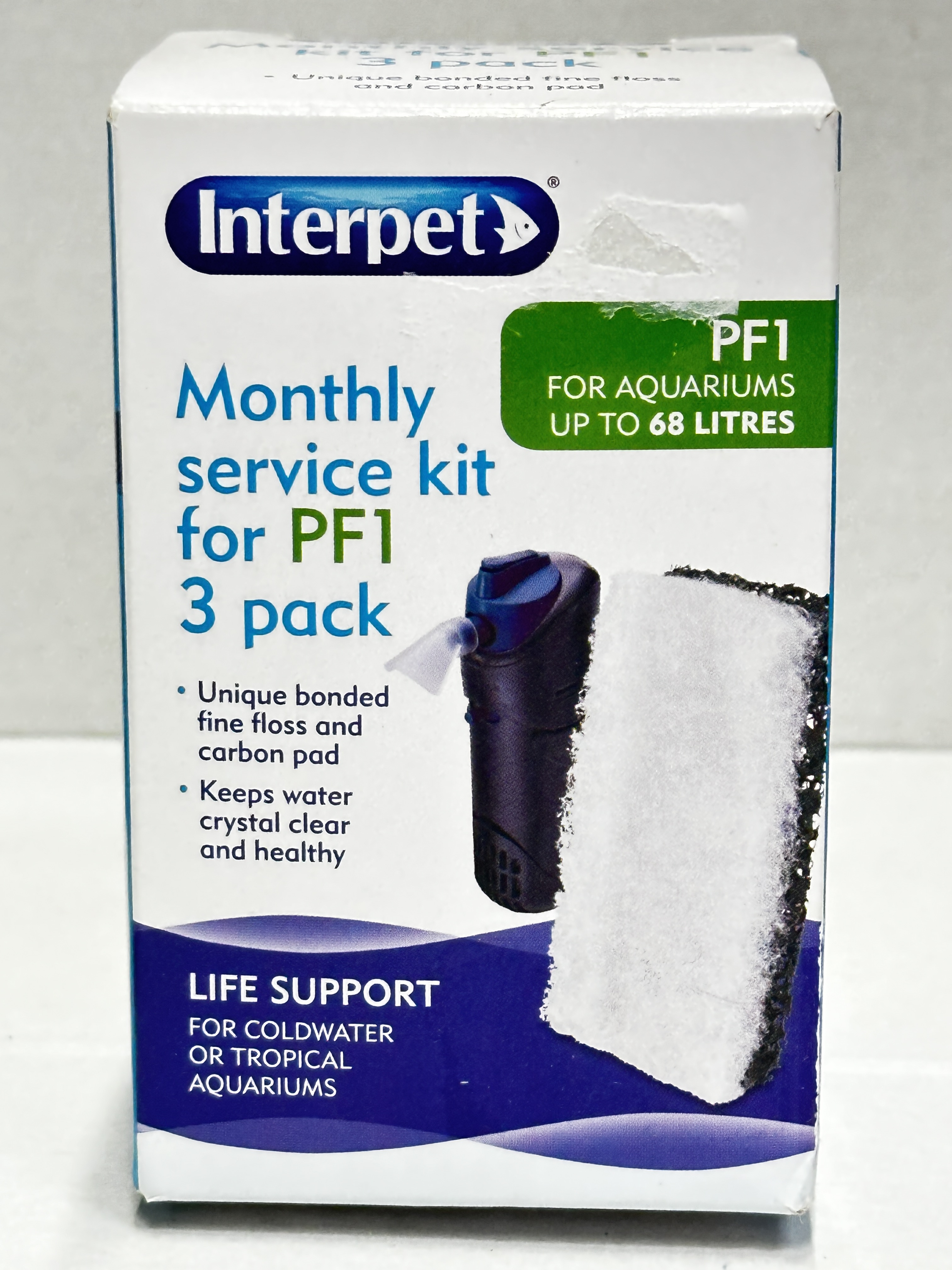 Keep your aquarium filter running effectively with the Interpet PF1 Monthly Service Kit. This handy 3 pack contains replacement bonded floss and carbon pads designed for the Interpet PF1 aquarium power filter.