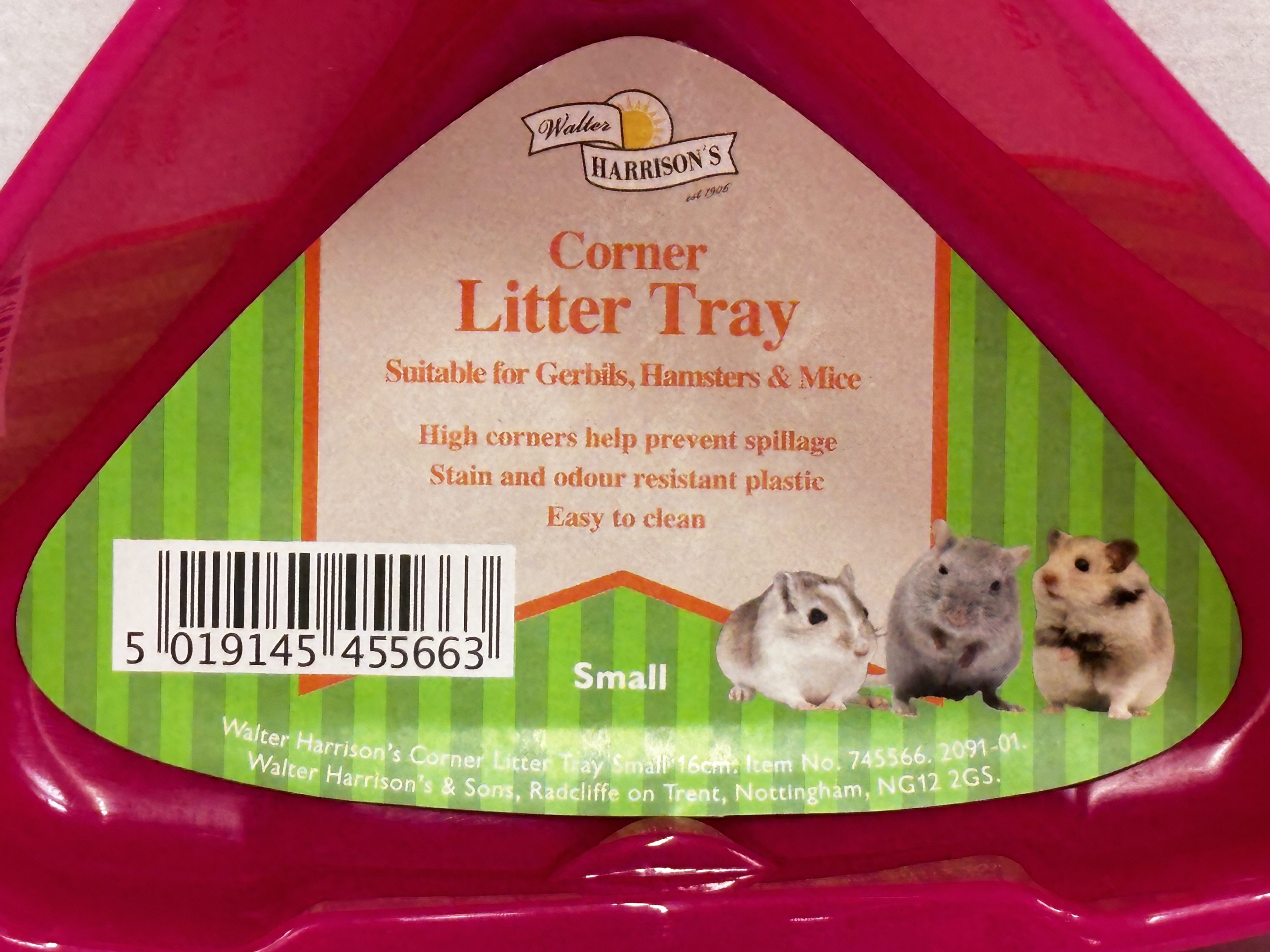 Keep small pet cages tidier with this Walter Harrison Corner Litter Tray in pink. Designed for gerbils, hamsters and mice, this small 16cm tray fits neatly into a cage corner to help make everyday cleaning and litter training easier.