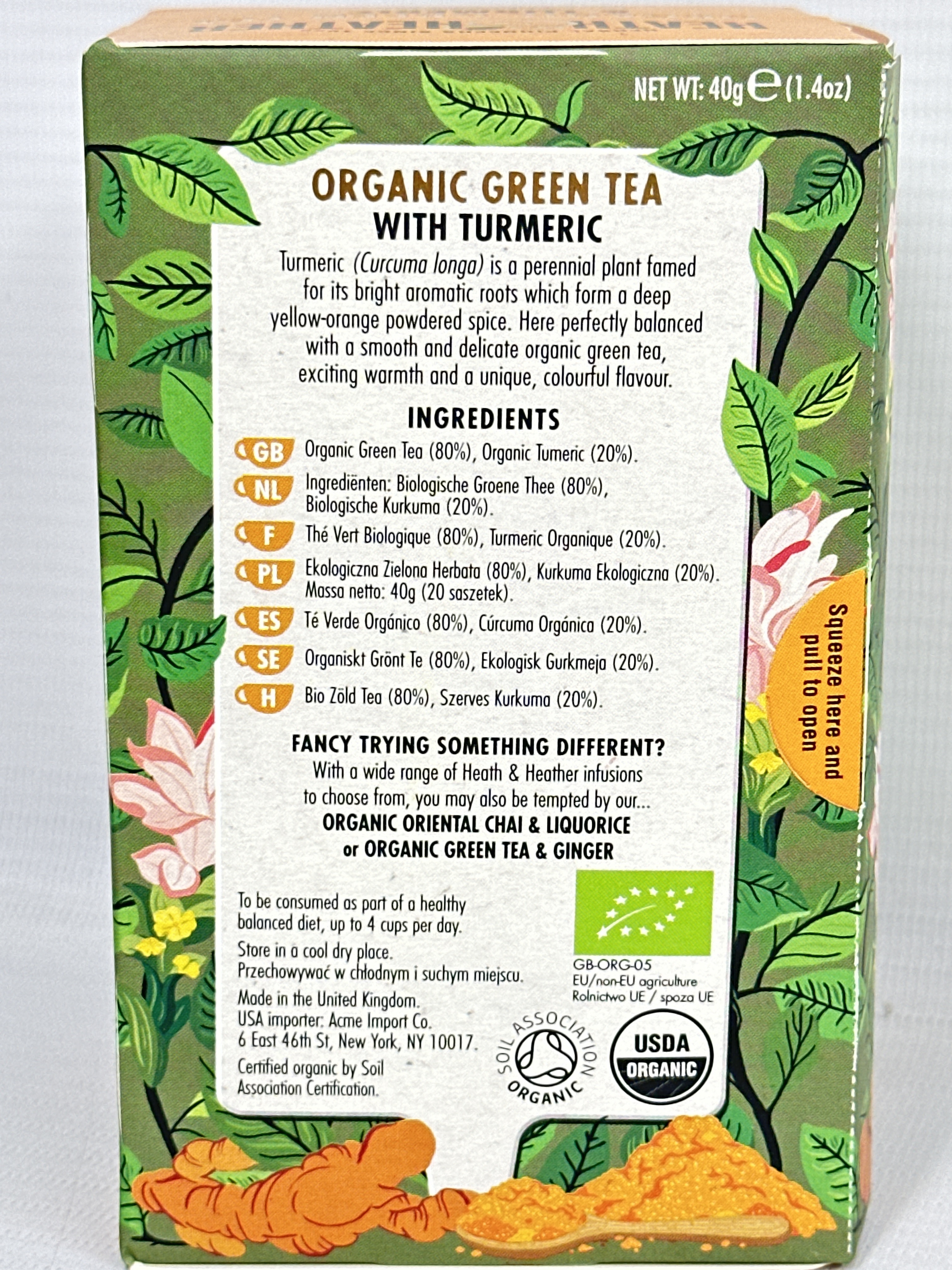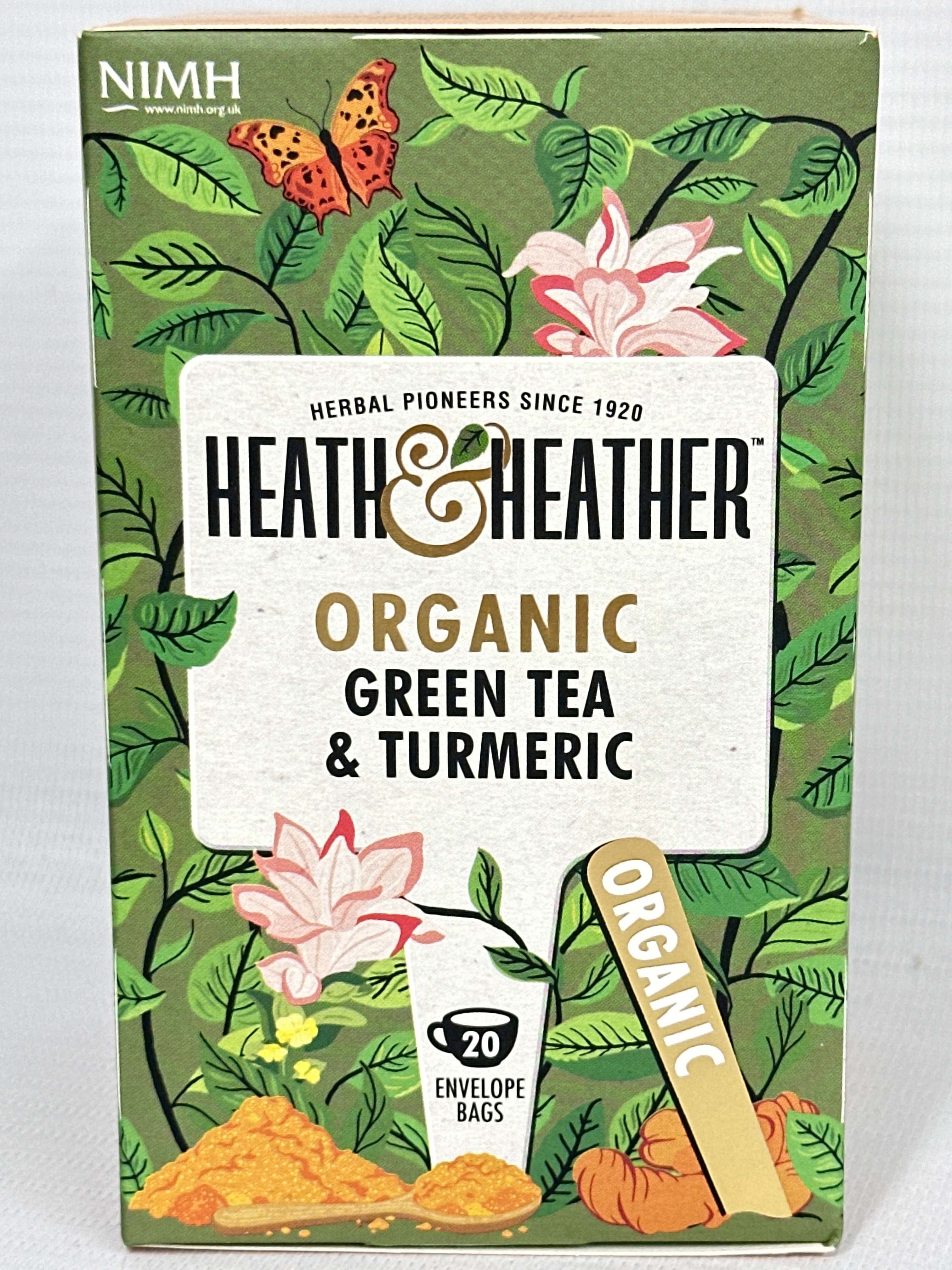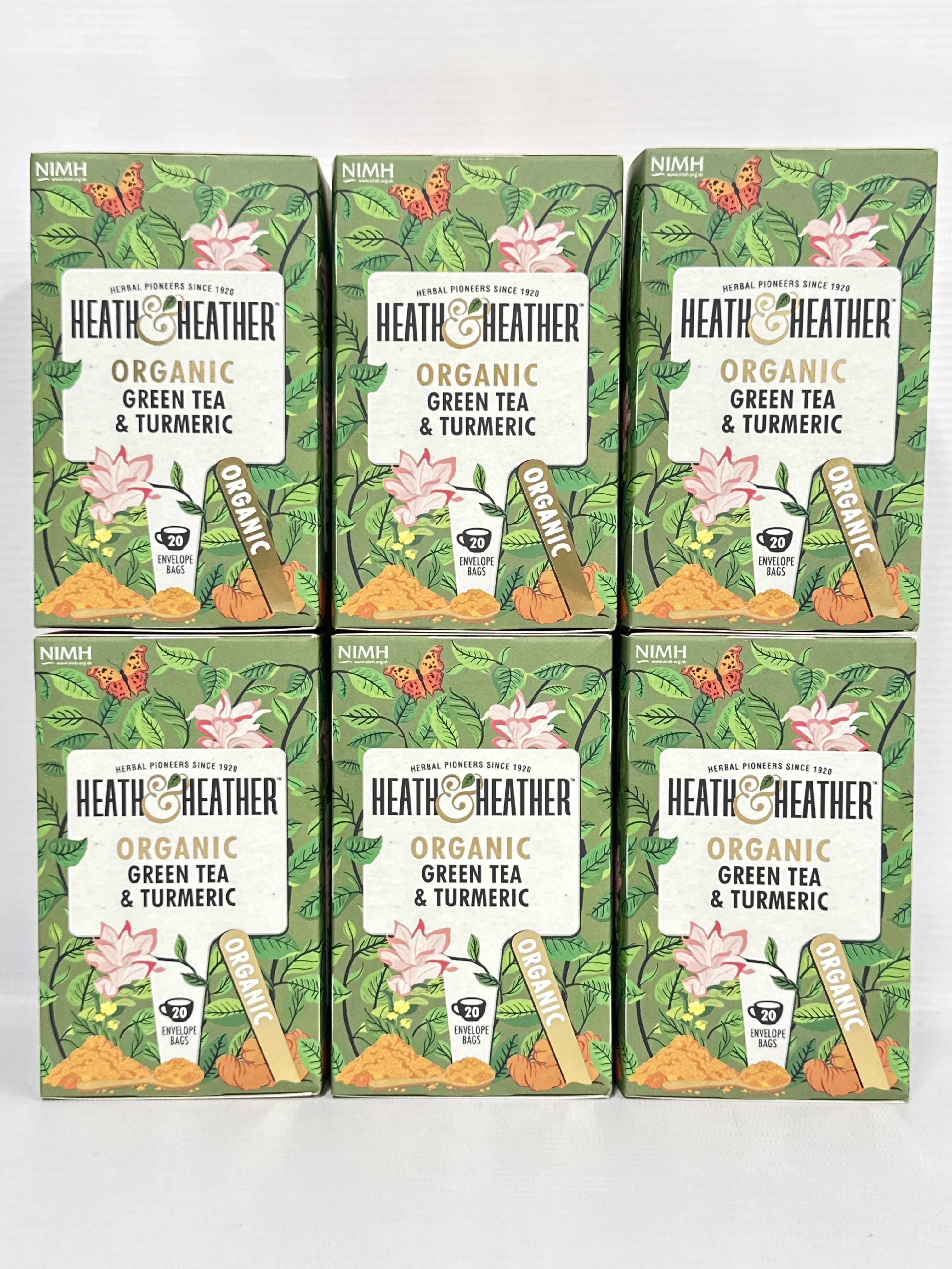 Heath & Heather Organic Green Tea & Turmeric 20 Envelope Bags (Pack Of 6)