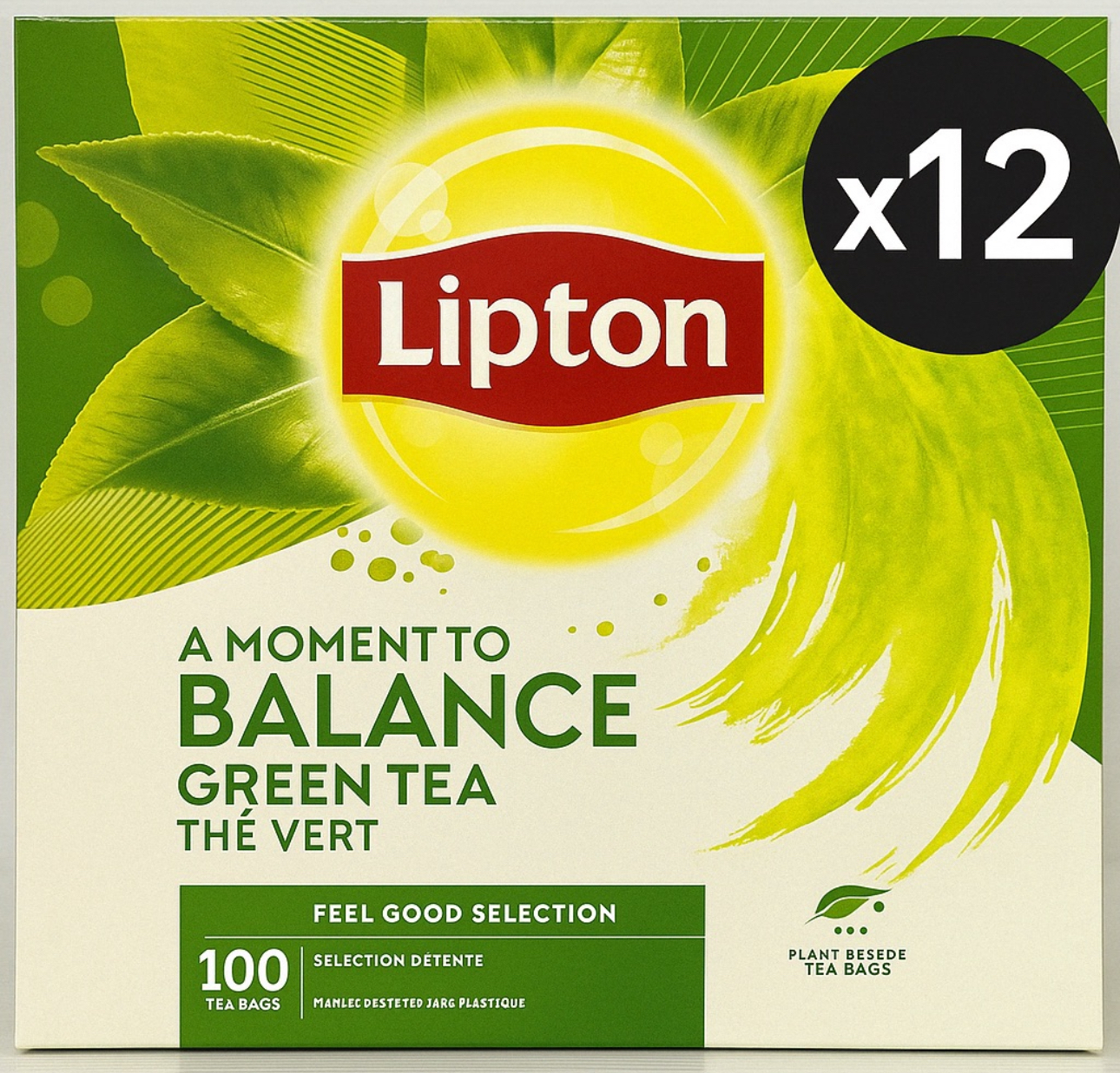Stock up with this great value bulk buy deal featuring 12 boxes of Lipton A Moment to Balance Green Tea, each containing 100 individually wrapped tea bags. Perfect for homes, offices, catering or shared spaces, this green tea offers a smooth, refreshing flavour to help restore calm and balance throughout your day.