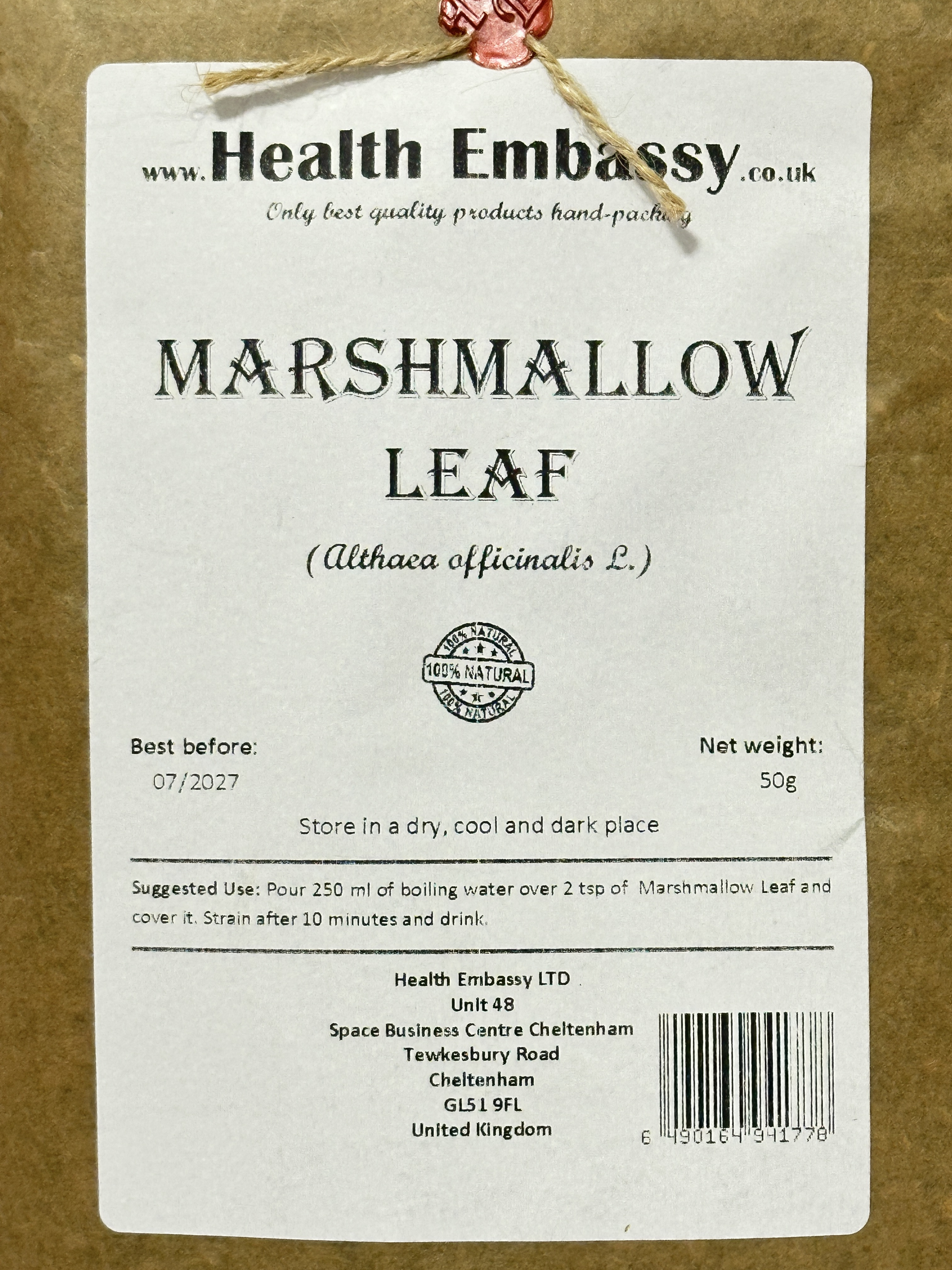 - Dried marshmallow leaf (Althaea officinalis L.)