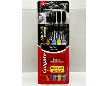 Colgate SlimSoft Charcoal Adult Toothbrushes 4 Pack Ultra Soft